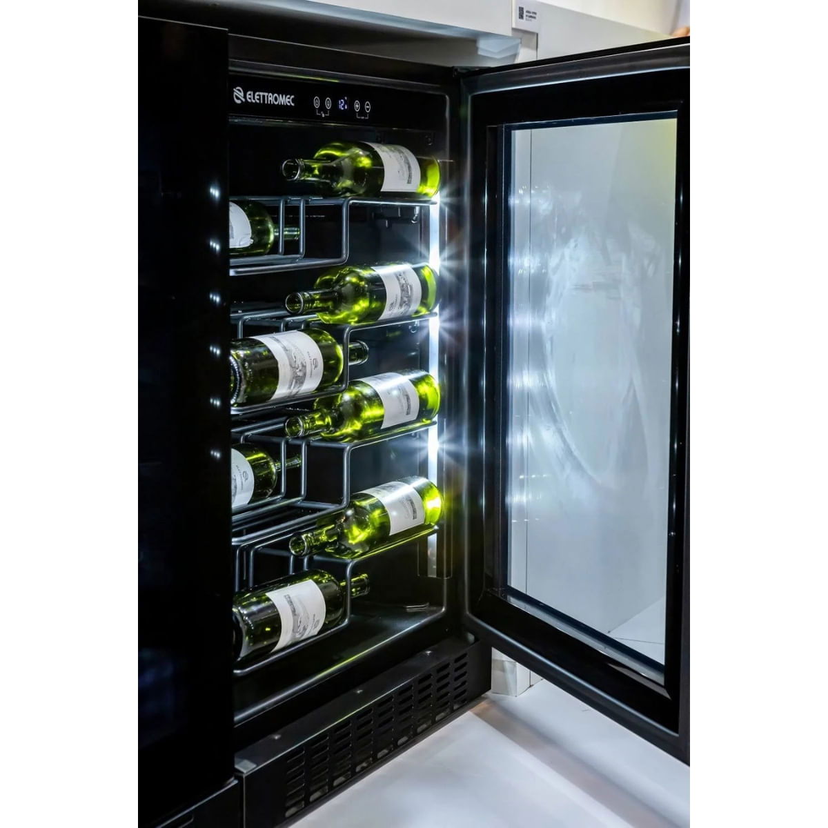 Apresentamos a Adega Vetro 40 garrafas, a escolha perfeita para os verdadeiros apreciadores e colecionadores de vinhos. Com sua exclusiva funcionalidade Label View, você terá visibilidade perfeita do rótulo de cada garrafa. Seu acabamento em vidro preto temperado, iluminação em LED e flexibilidade para ser embutida ou utilizada sob a bancada, a tornam a adição perfeita para qualquer ambiente. ⭐️🍷
