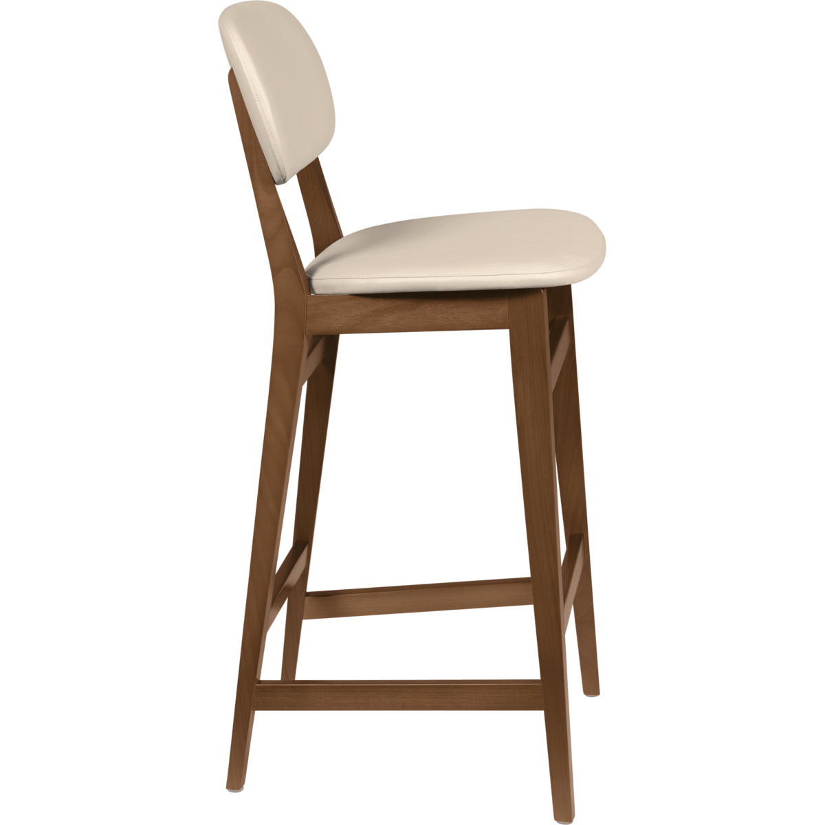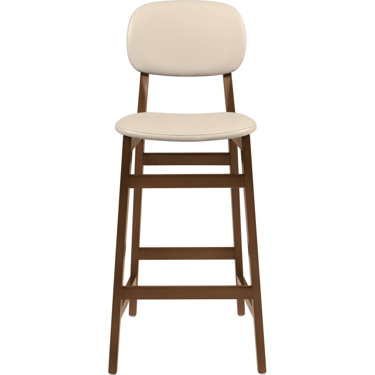 Banco Alto Tramontina Piazza London em Madeira Tauarí com Acabamento Envernizado Amêndoa e Estofado Bege sem Braços