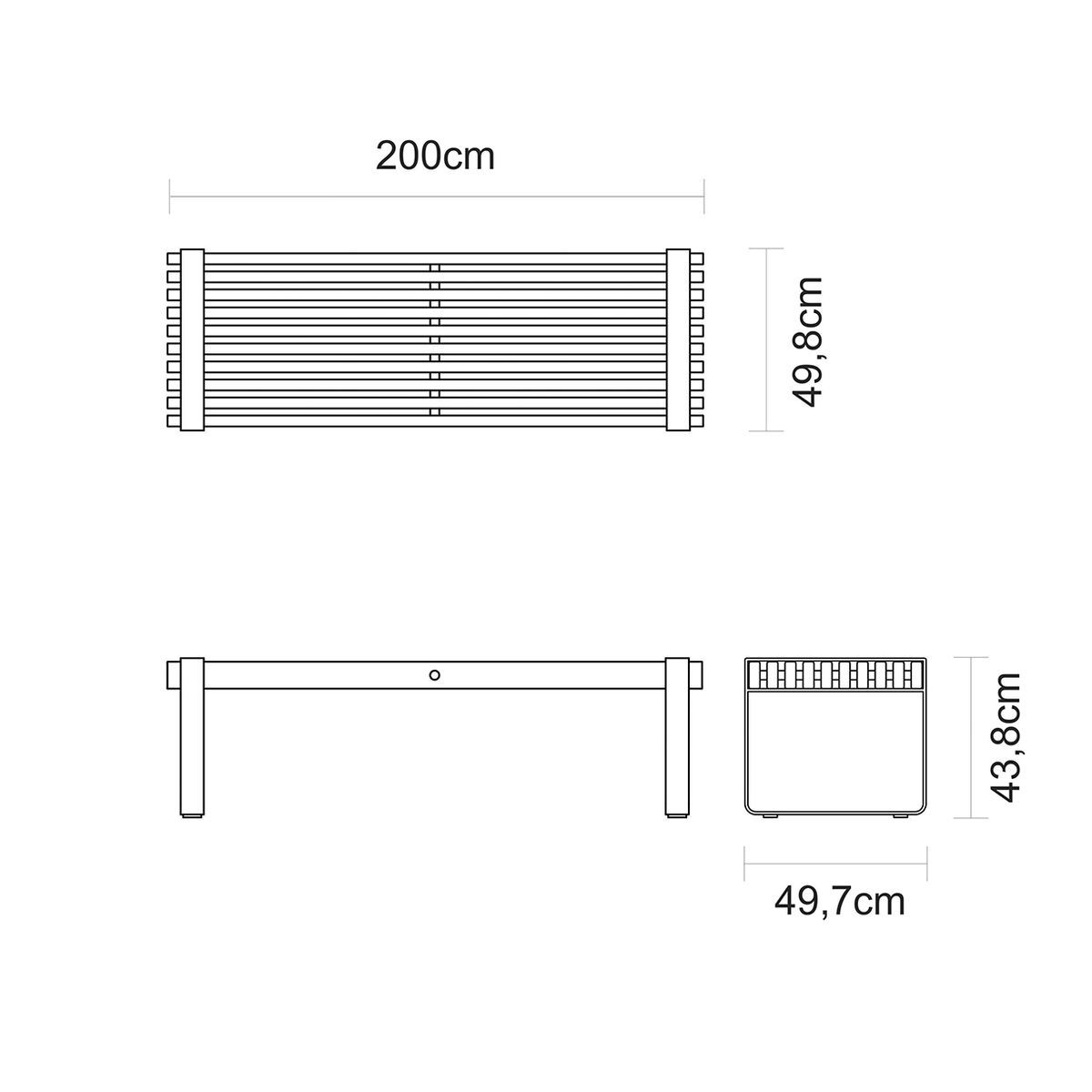 ESTRUTURA Barra de aço. KIT DE MANUTENÇÃO. Cada banco seguirá com um kit que contém 1 frasco de 200 ml com detergente neutro e 1 frasco com 200 ml de verniz restaurador, suficientes para o primeiro uso. A manutenção é simples e prevê a limpeza do banco utilizando o detergente, seguida da aplicação do verniz. Deve ser realizada uma vez ao ano ou quando julgar necessário.