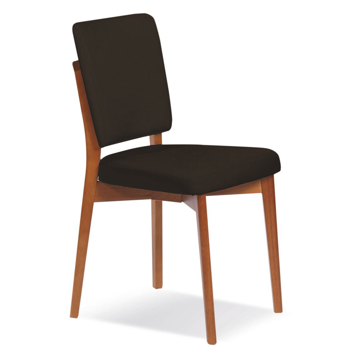 Cadeira de Madeira Tramontina Berlim em Tauari Amêndoa sem Braços com Encosto e Assento Estofado Preto