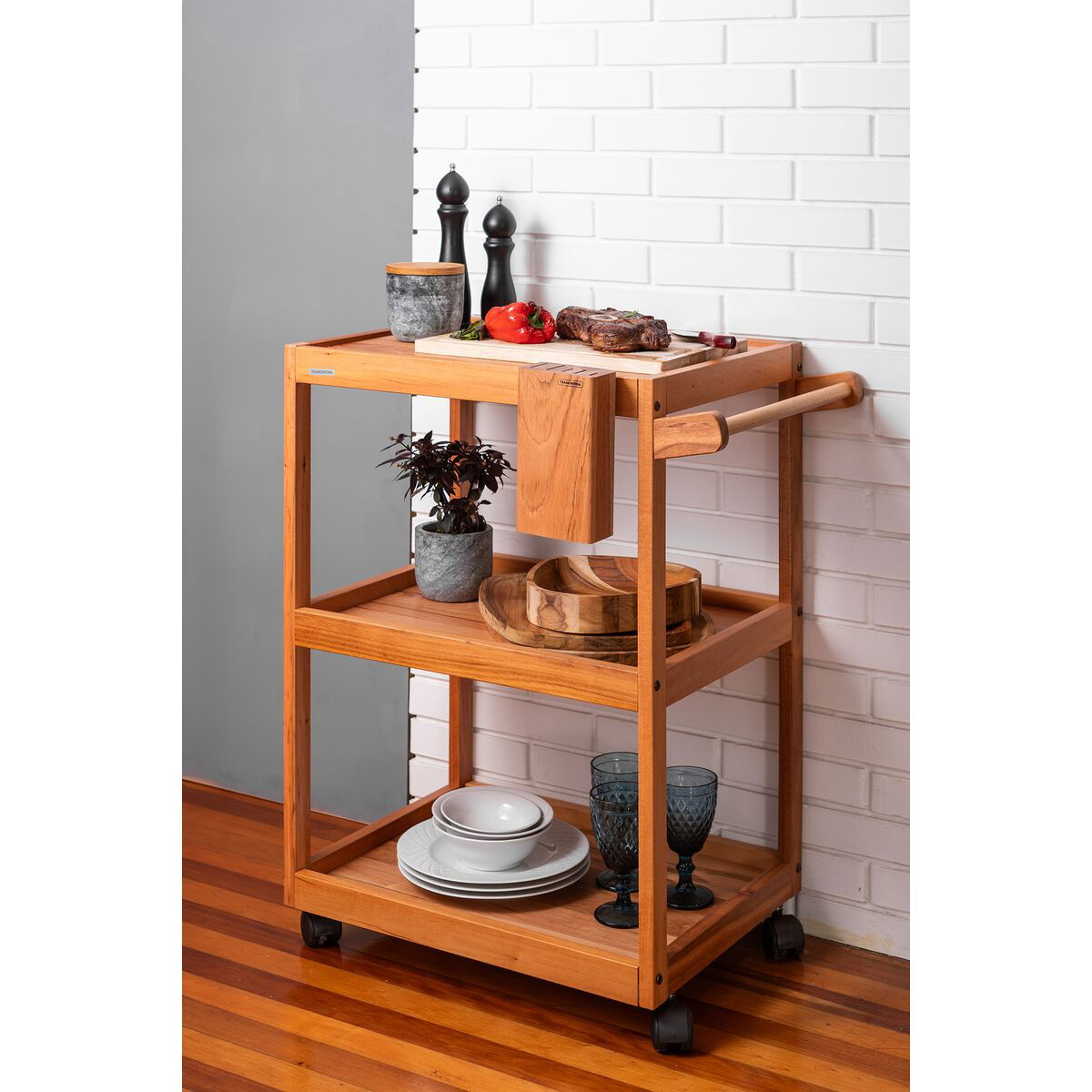 Carro de apoio Tramontina em Madeira Muiracatiara FSC com Acabamento em Óleo Mineral e Cepo