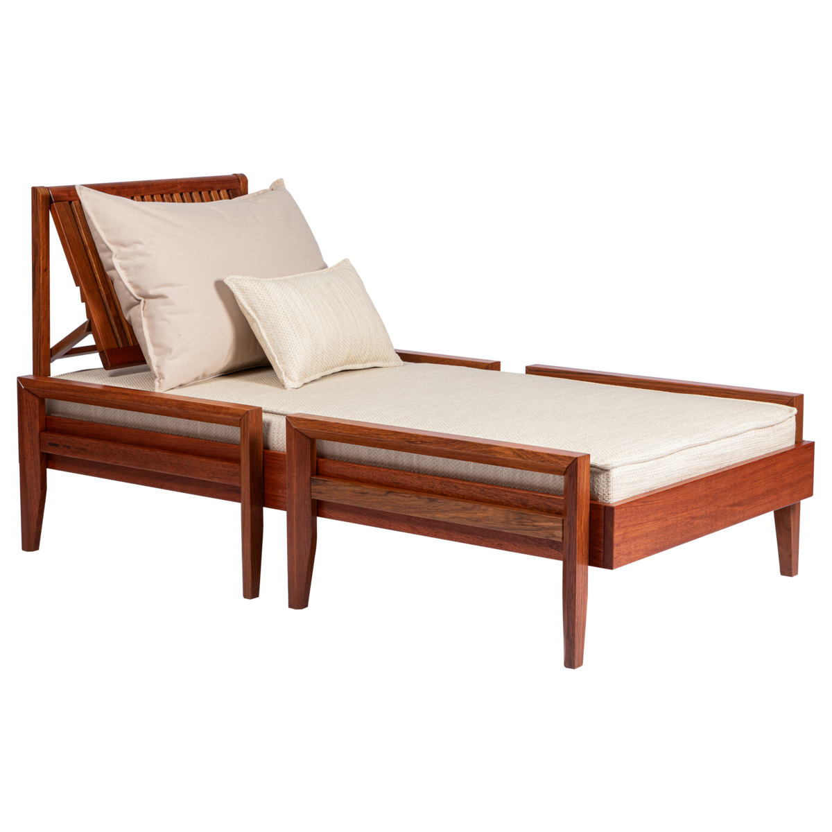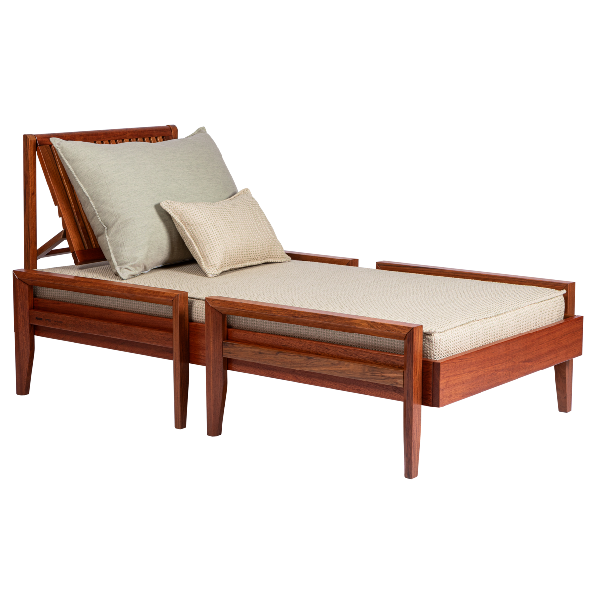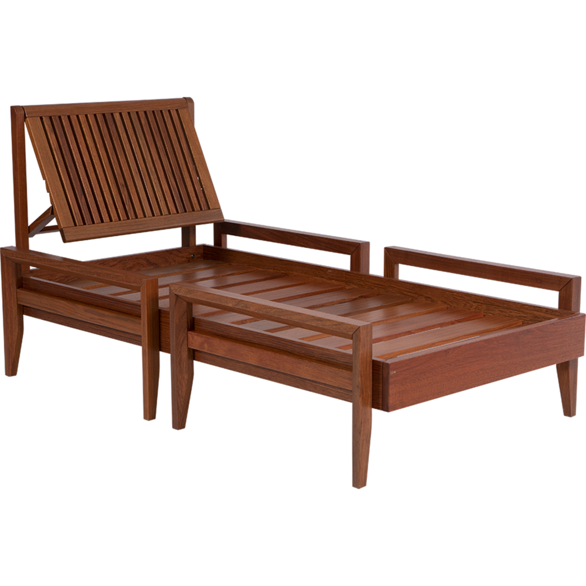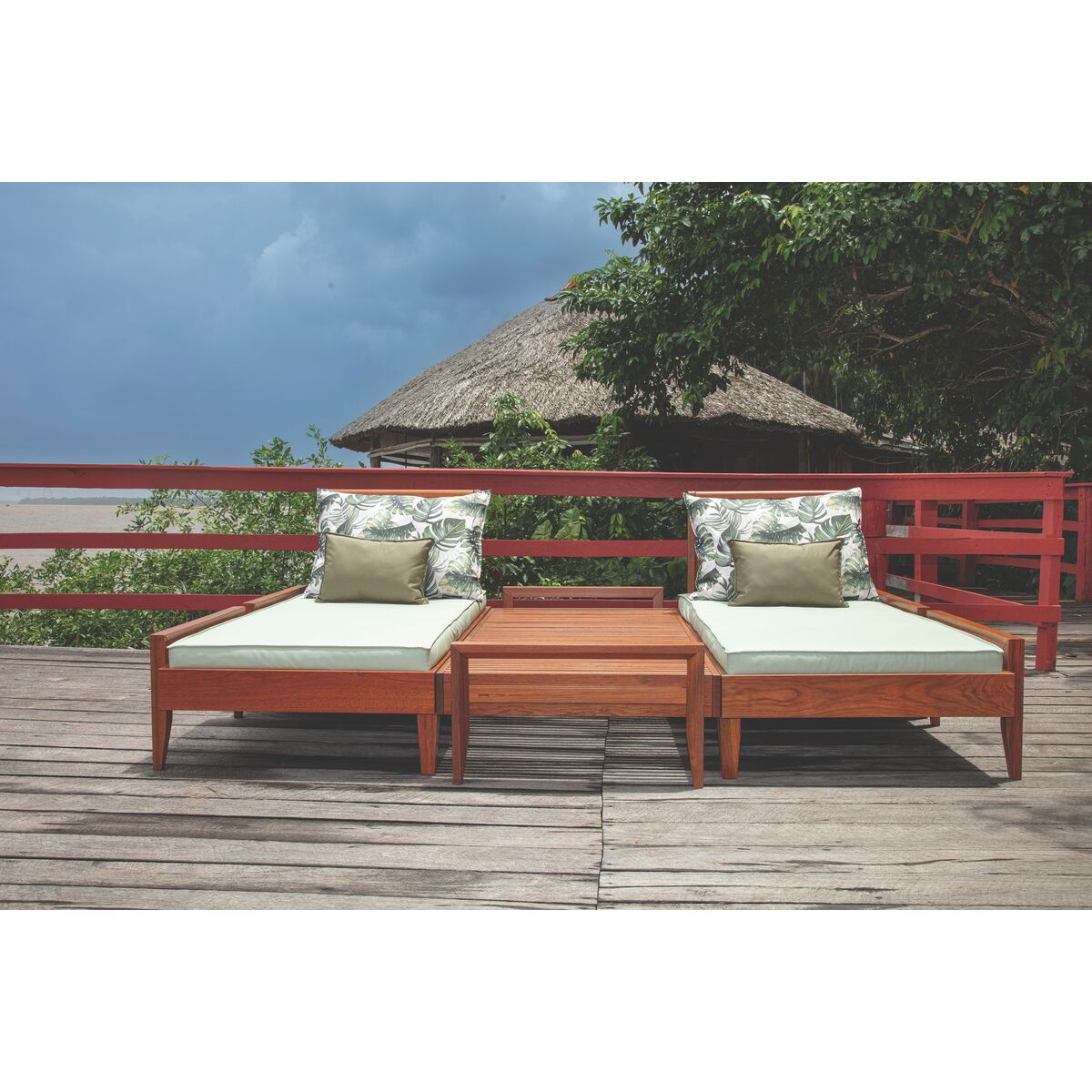 Produzido em madeira maciça Jatobá FSC de alta densidade e resistência às intempéries.