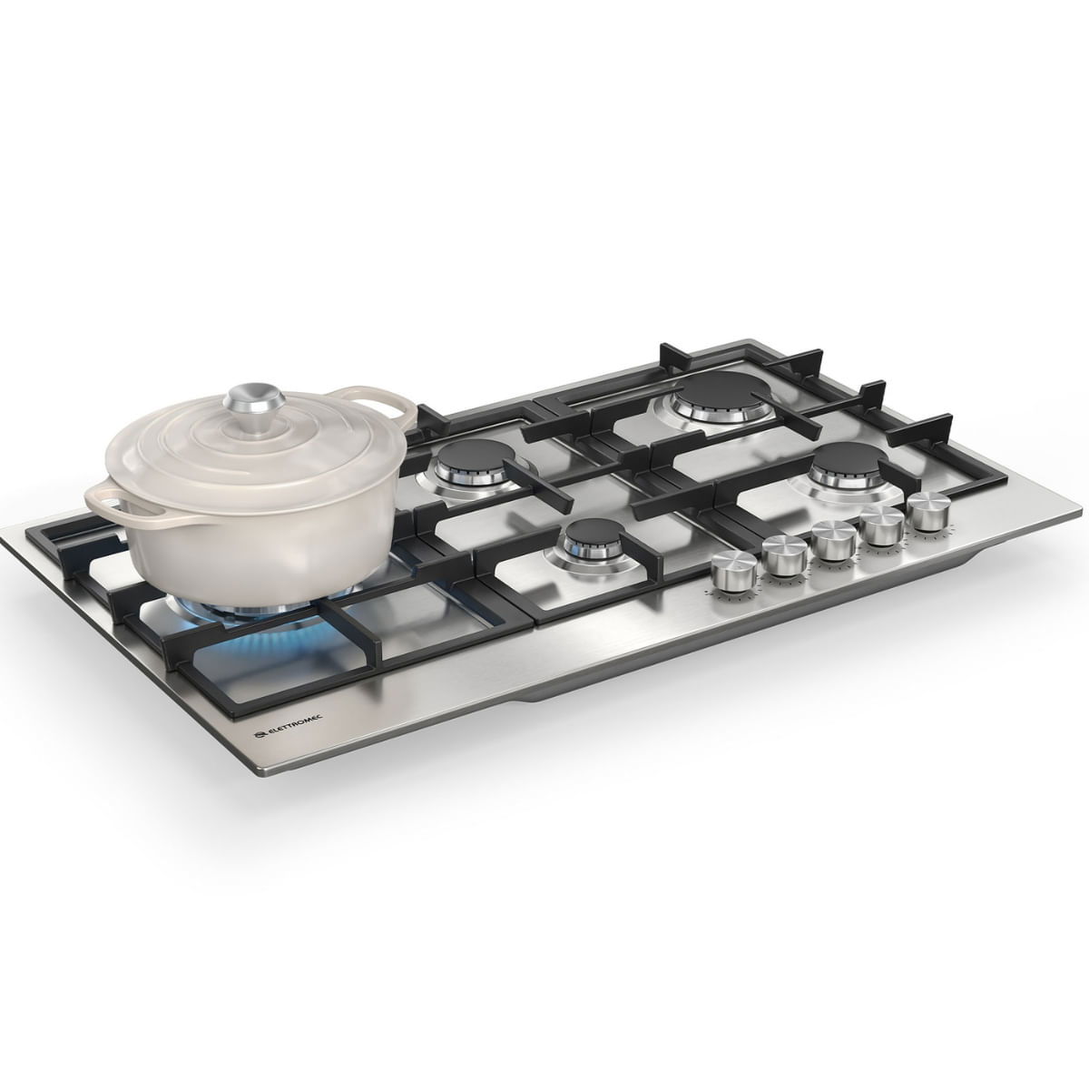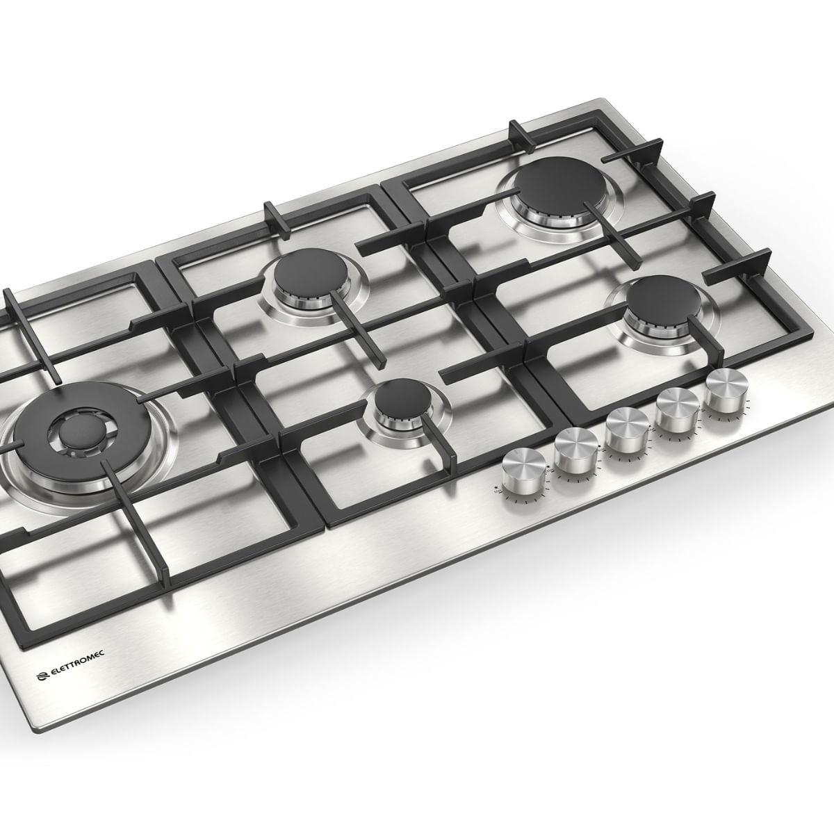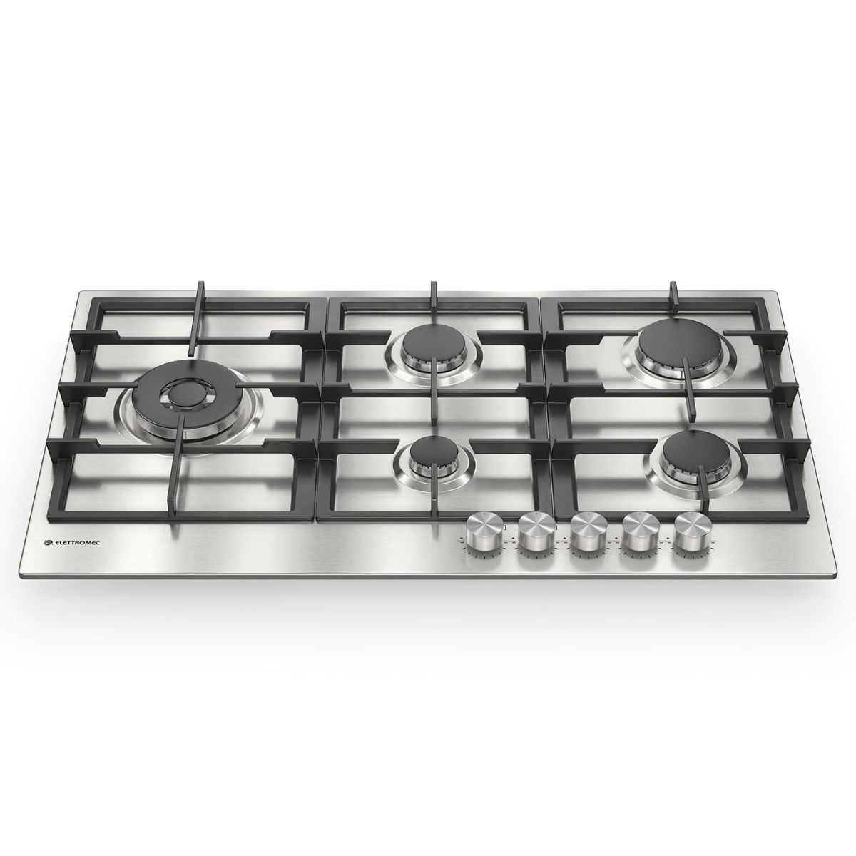 - 5 Queimadores: Inclui queimadores Sabaf / Defendi, com 1 Dual Flame lateral de 4kW de potência, proporcionando uma utilização mais prática e segura.