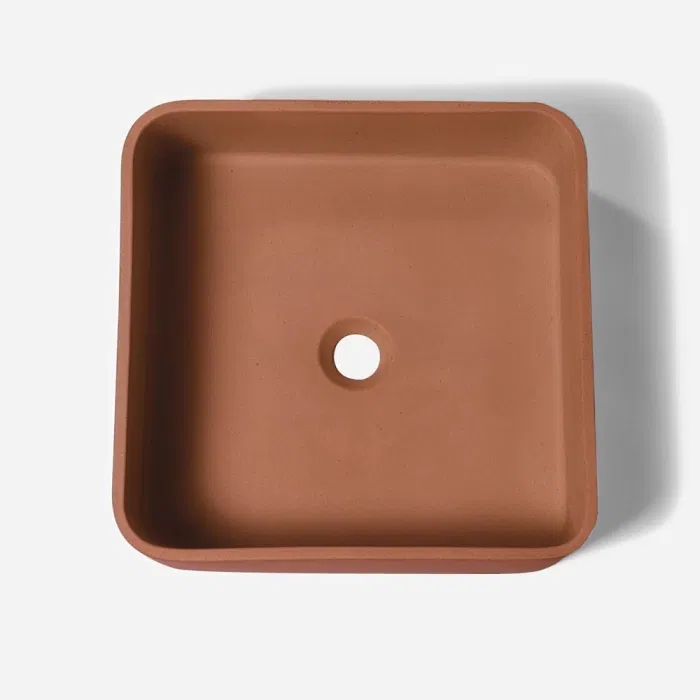 Apresentamos a "Kuba Concreto", uma Cuba de Banheiro de apoio quadrada, com 40 cm, na cor Urban Salmão. Com suas paredes finas e cantos arredondados, ela transmite uma sensação de autoridade e sofisticação, sendo a escolha perfeita para ambientes maiores. 😍