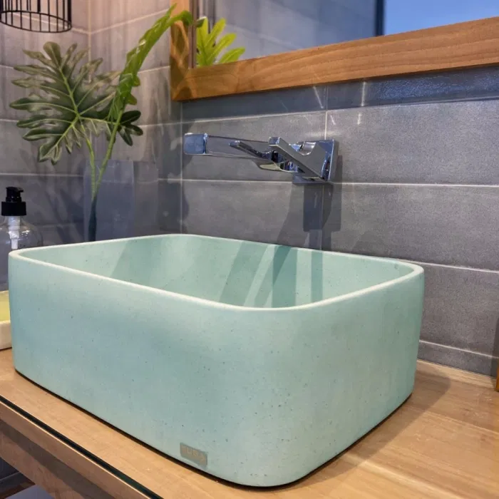 Apresentamos a "Kuba Concreto", uma cuba de banheiro retangular de apoio com 42 cm. Com bordas arredondadas, este produto oferece leveza, nobreza e elegância, especialmente para ambientes menores.🌟