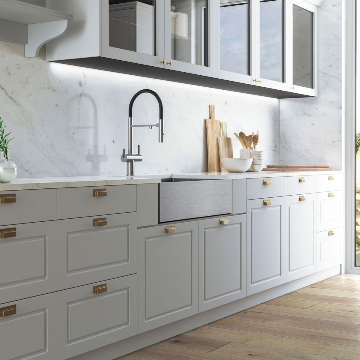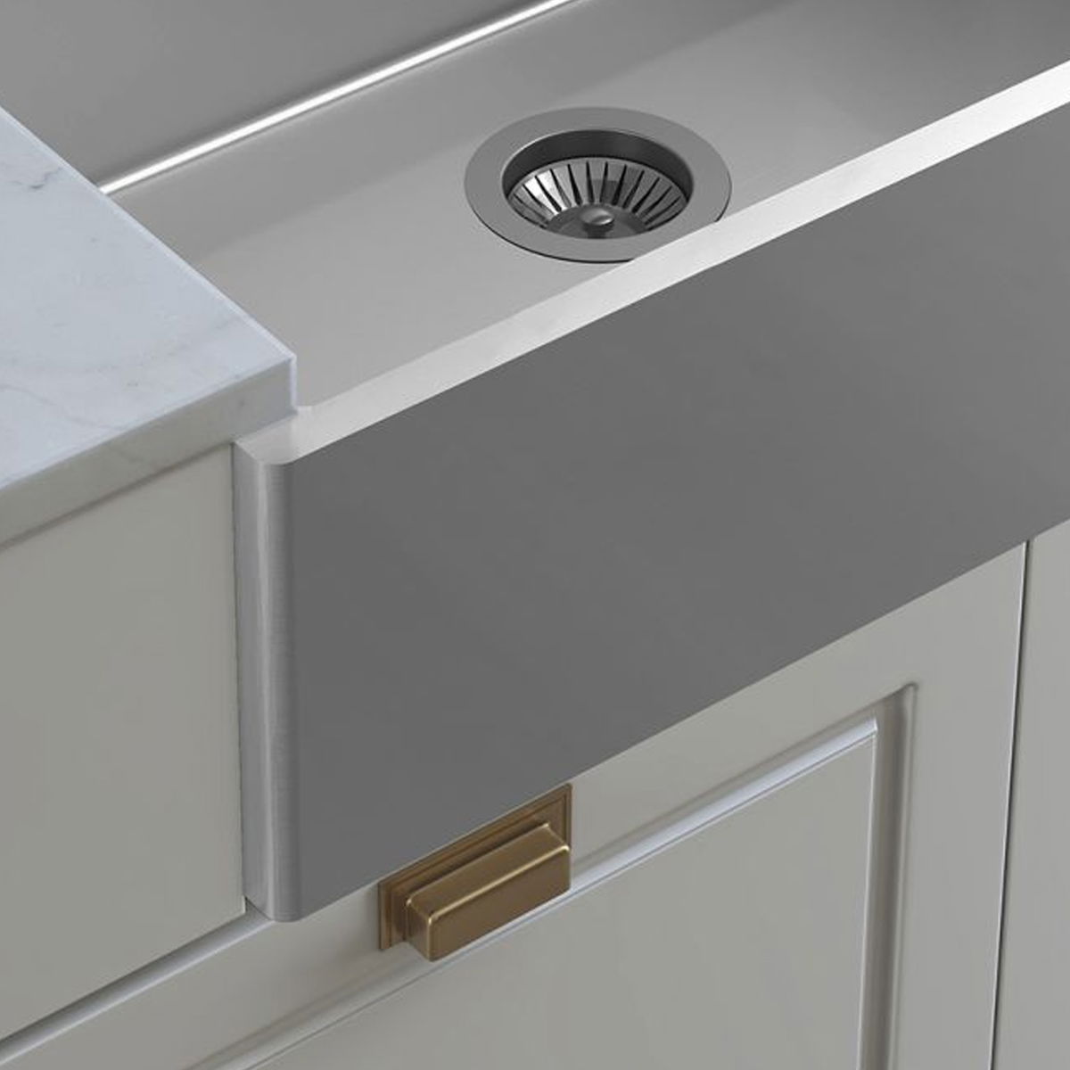 Apresentamos a CUBA QUADRATINO FARM SINK STEEL - um elemento chave para criar uma cozinha sofisticada e marcante. Feita em aço inox escovado de 1.2 mm, seu design slim com linhas retas e cantos ergonomicamente arredondados, se encaixa perfeitamente em projetos de cozinha minimalista. 😍