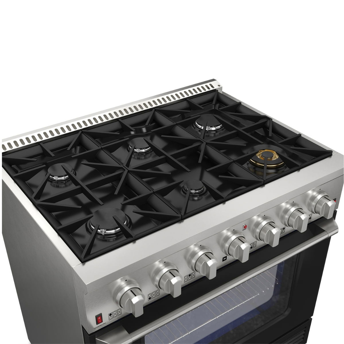 - Queimadores de alta performance: Equipado com 6 queimadores Defendi/Sabaf, incluindo um queimador Dual Flame de 4,39kW de potência, garante eficiência na cozinha.