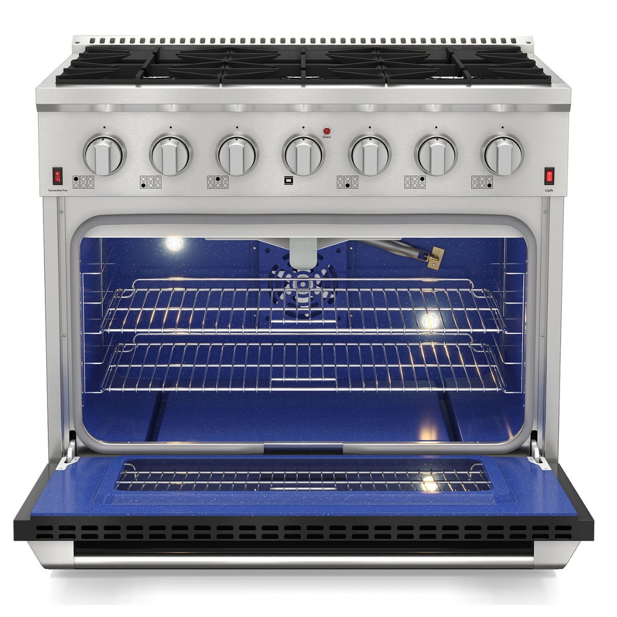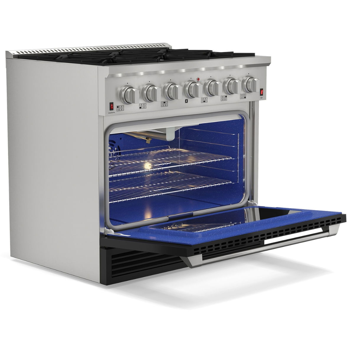 Experimente o Fogão Professional Black a Gás 36 Polegadas e eleve o nível de suas habilidades culinárias. Com ele, cozinhar se torna uma experiência verdadeiramente profissional.👌