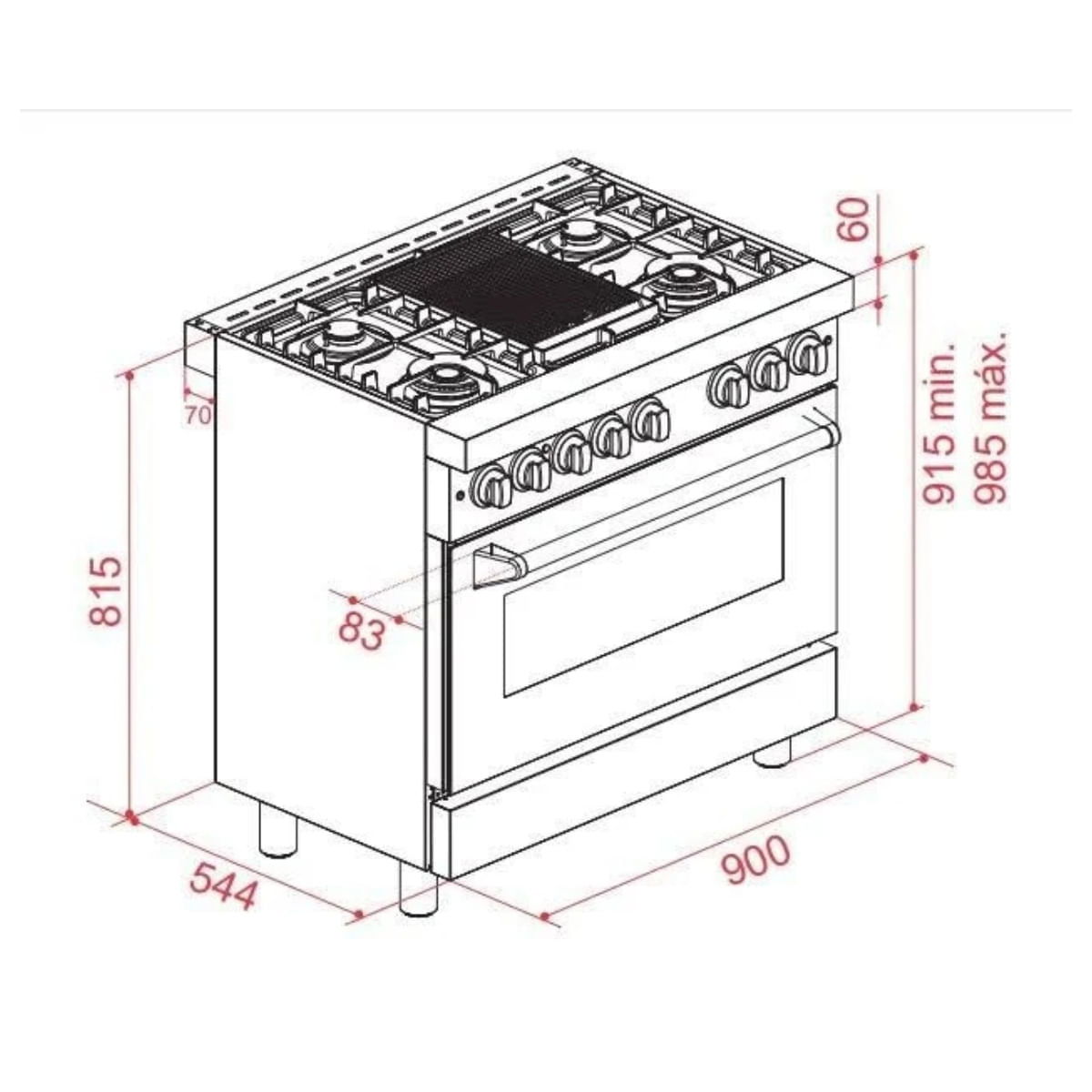 | Modelo | Fogão Professional Gás/Gás 90 cm |