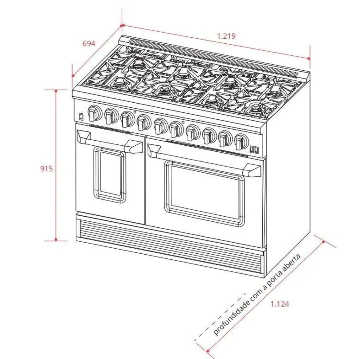 | Modelo | Fogão Professional Inox Gás/Gás 48 Polegadas 127V |
