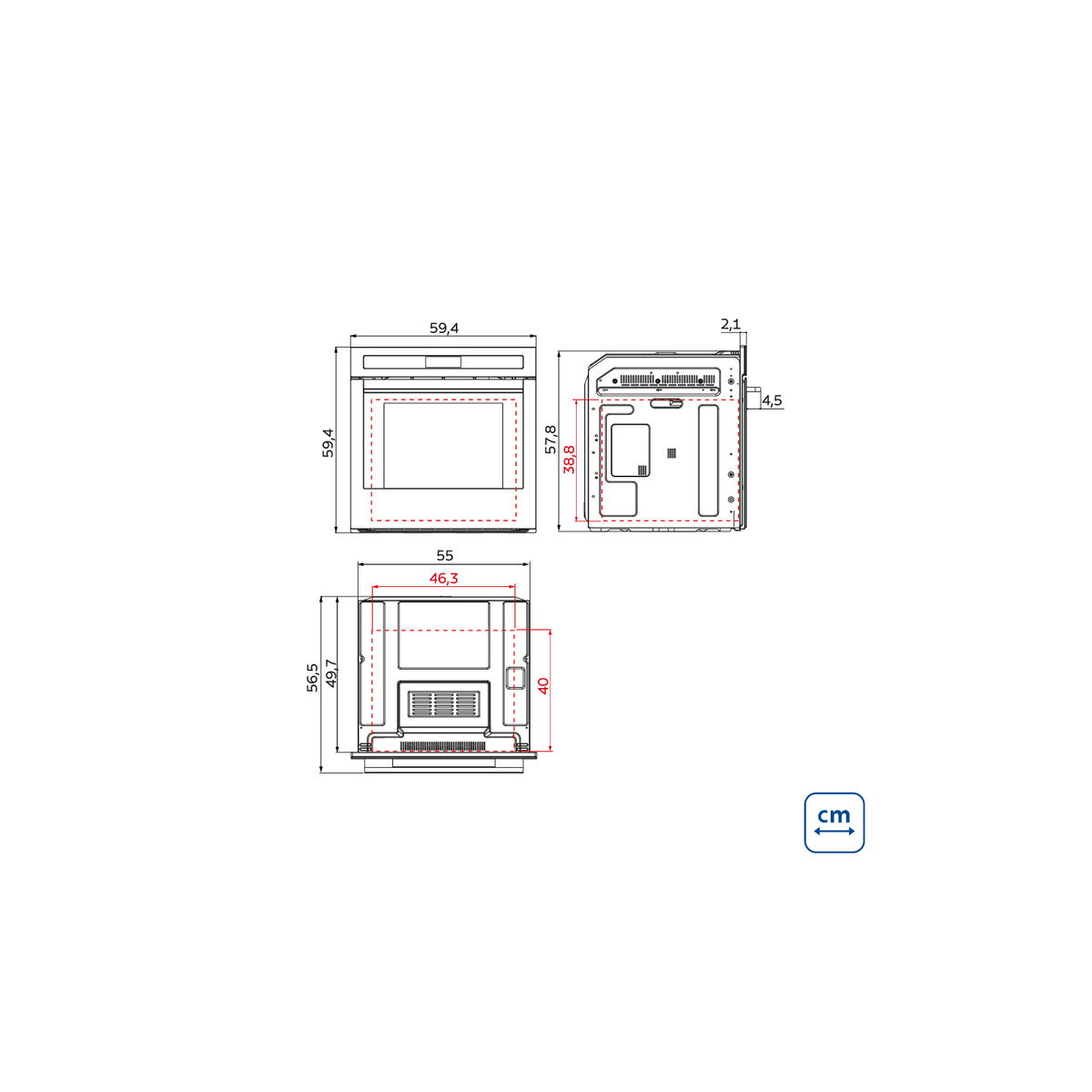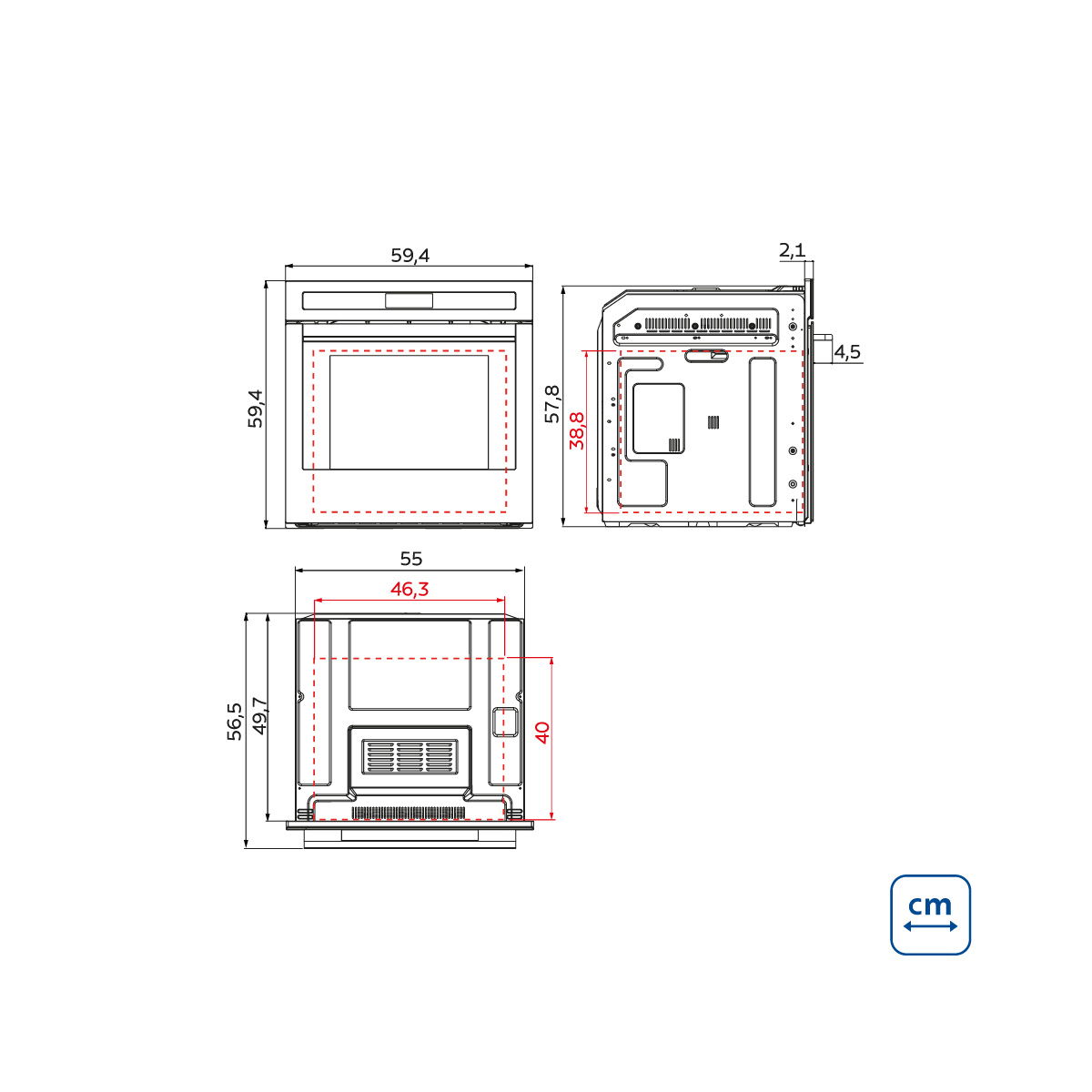 - Largura: 565 mm
