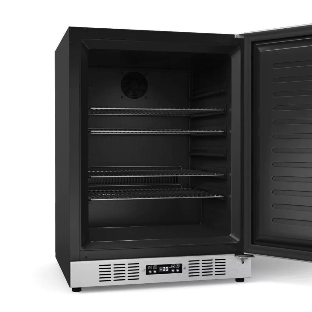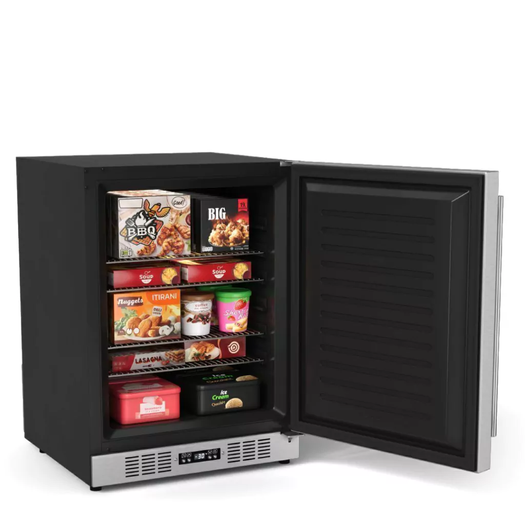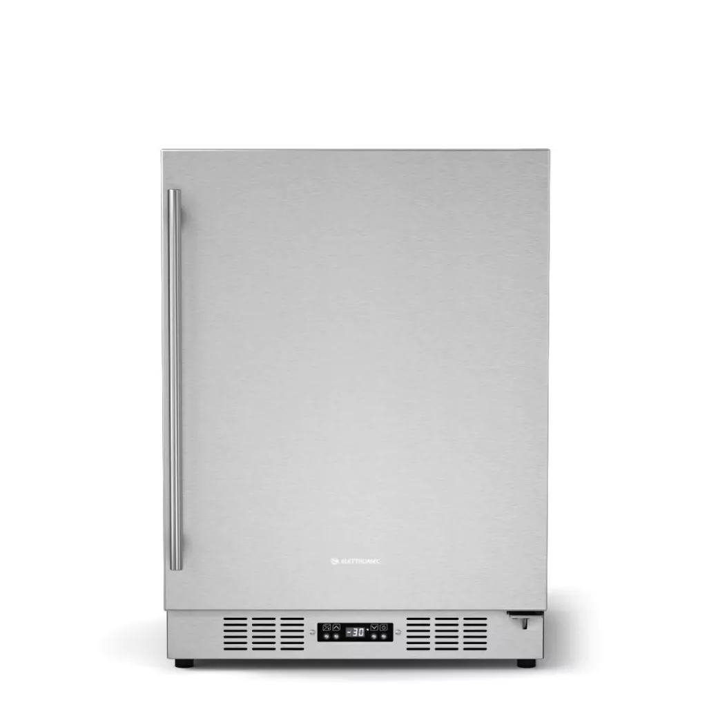 O Freezer Built-In "Elettromec" destaca-se pelo seu design robusto e sofisticado, com acabamento em inox de alta qualidade, garantindo durabilidade e um toque de elegância ao seu espaço. O design embutido permite integração perfeita com seus armários, criando uma aparência contínua e moderna.
