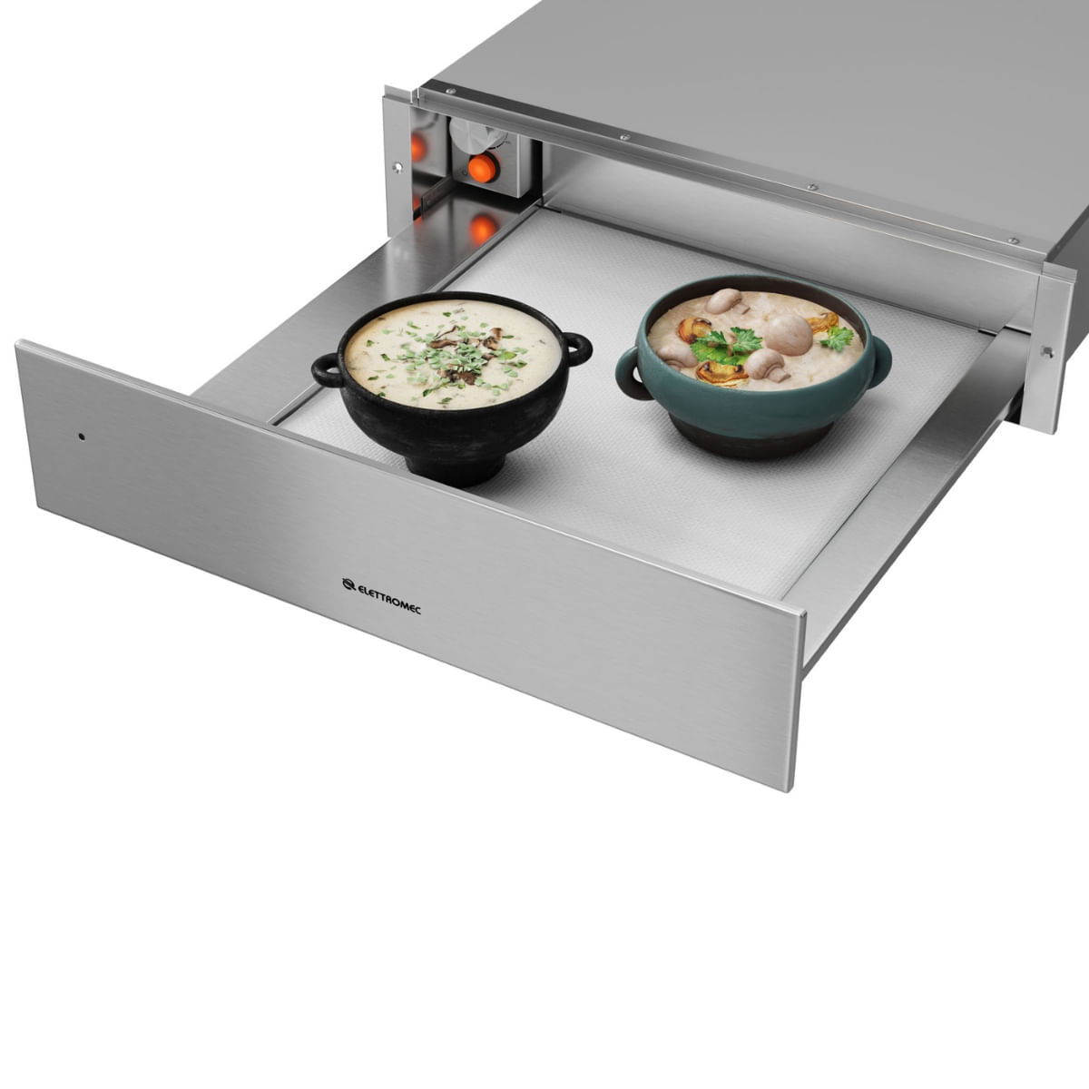Descubra um item de luxo indispensável em sua cozinha: a Gaveta Aquecida. Projetada com um elegante acabamento em aço inoxidável, ela é perfeita para conservar pratos, aquecer louças e até desidratar frutas e folhas. Com uma capacidade para atender até 6 pessoas, este modelo é uma excelente adição aos fornos e micro-ondas da linha inox Elettromec. 😊