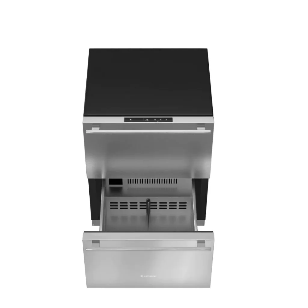 - Instalação embutida: Seu design moderno e acabamento em aço inox garantem elegância e a possibilidade de combinação com a linha de produtos undercounter Elettromec.
