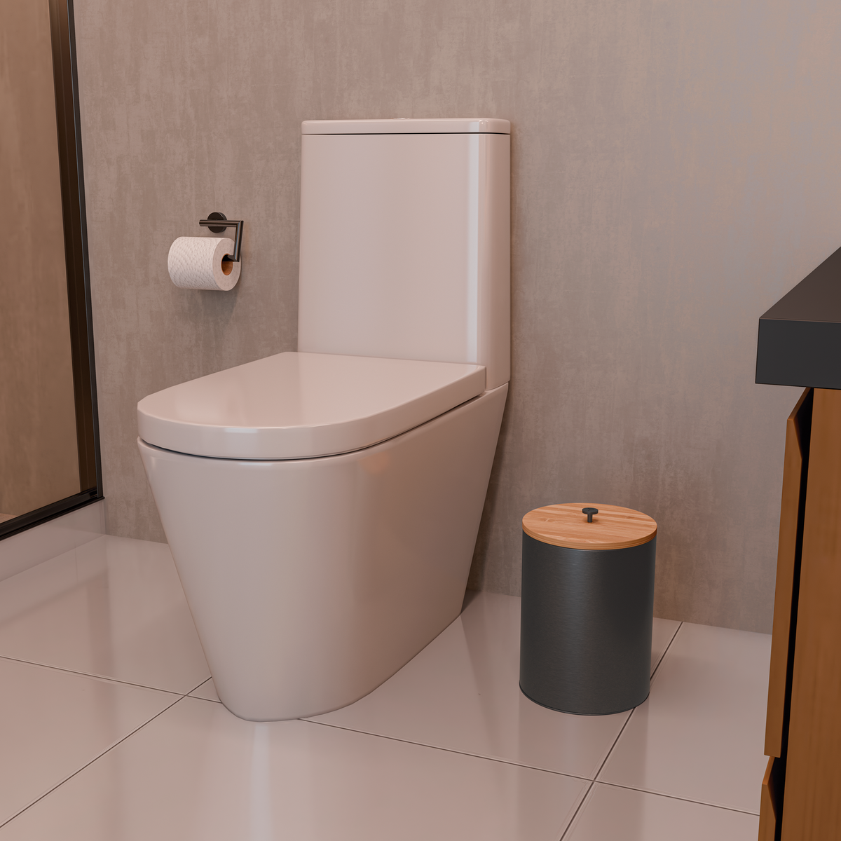 Lixeira Inox Tramontina Útil Black Matte com Tampa de Bambu e Acabamento Acetinado 5 L