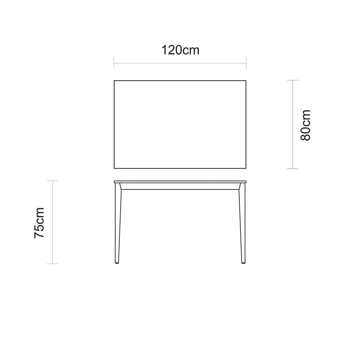 Mesa de madeira tauarí. Acabamento com verniz tingido de amêndoa. Tampo de 1,20 cm. Produto é entregue desmontado.