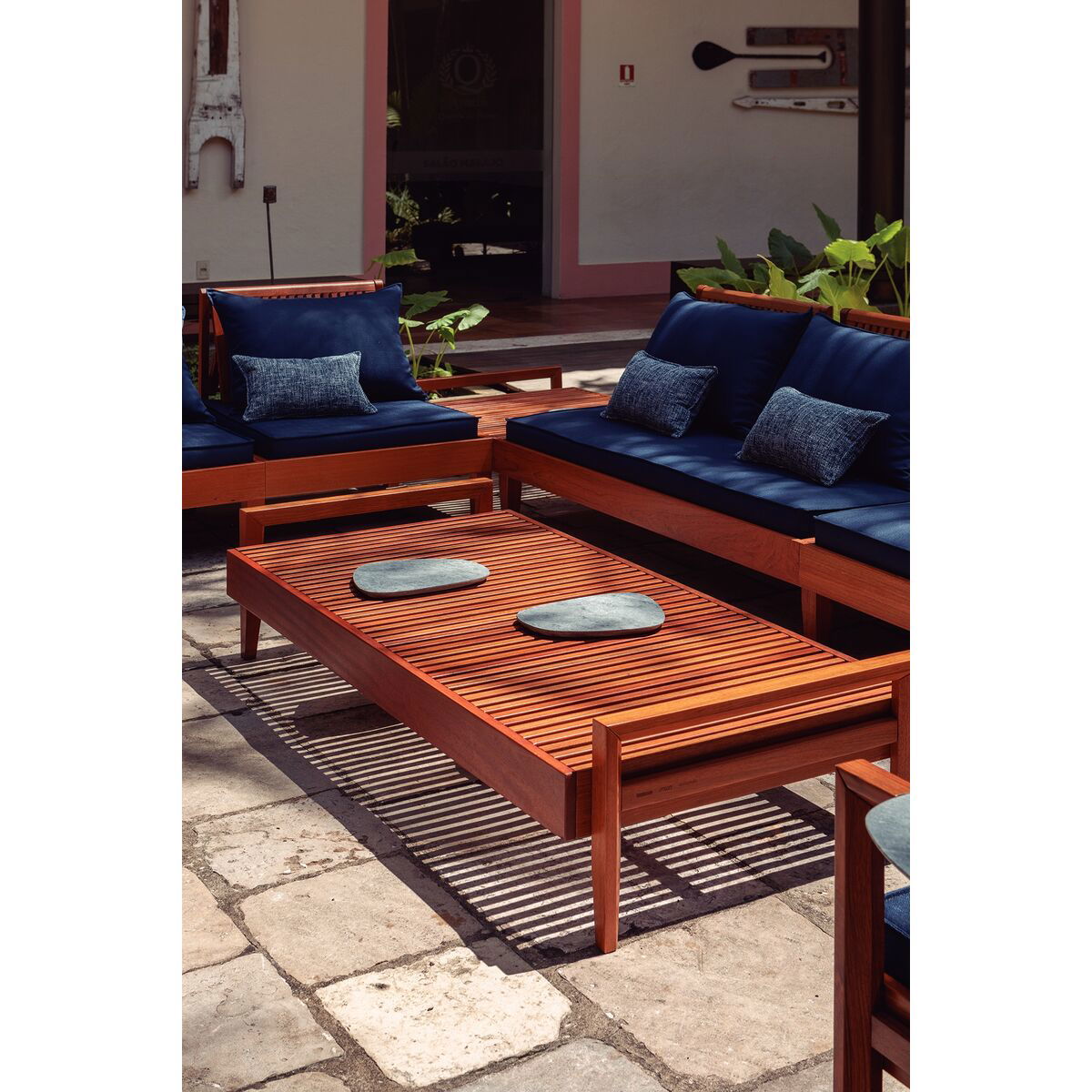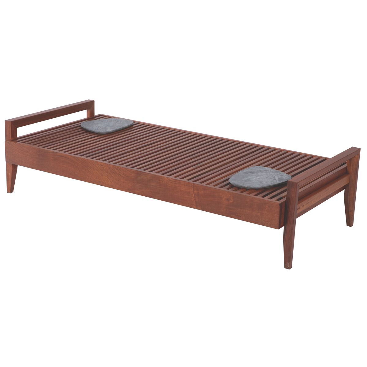 Produzido em madeira maciça Jatobá FSC de alta densidade e resistência às intempéries.