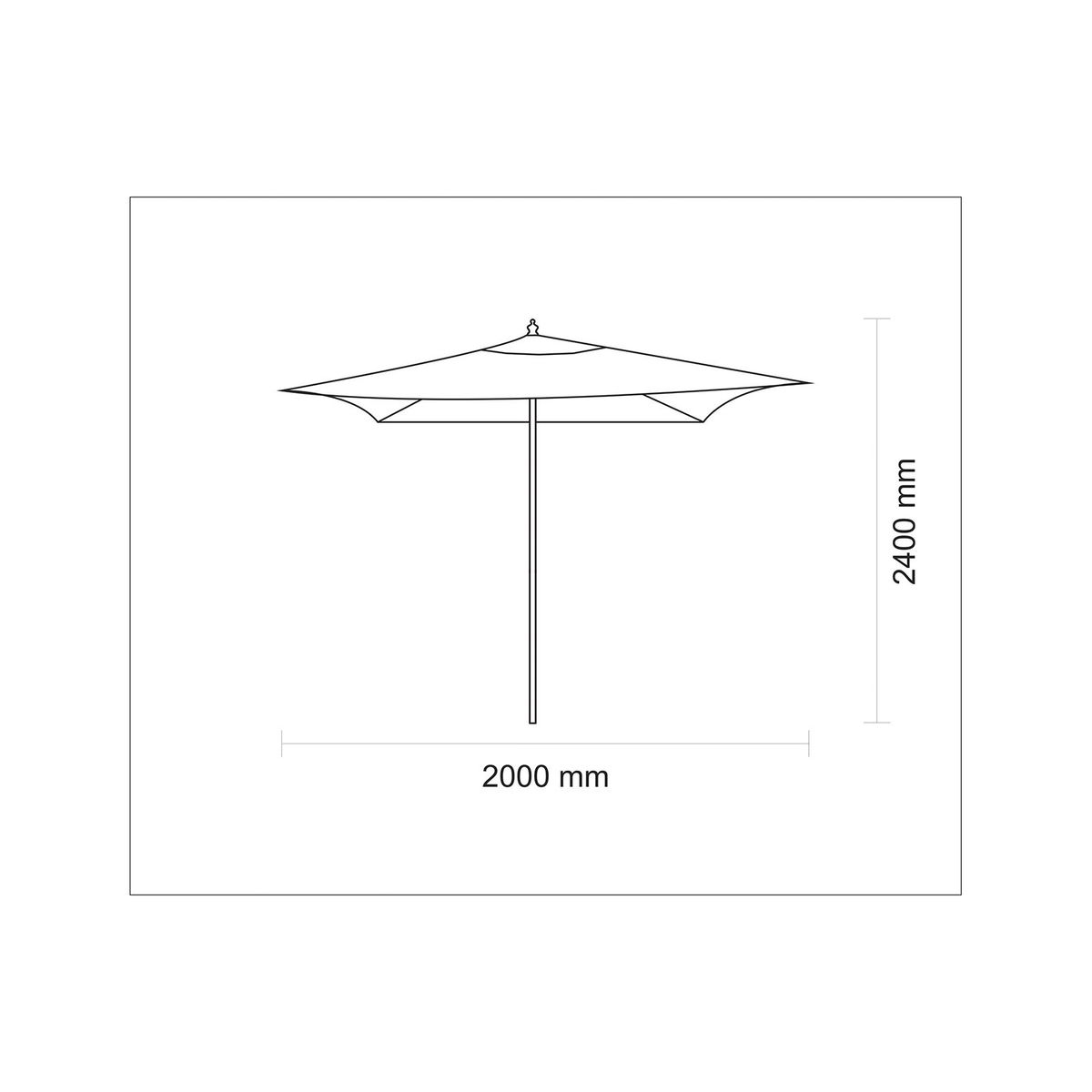 Ombrelone na cor Verde. Possui 2,0m de diâmetro da cobertura. Formato quadrado.