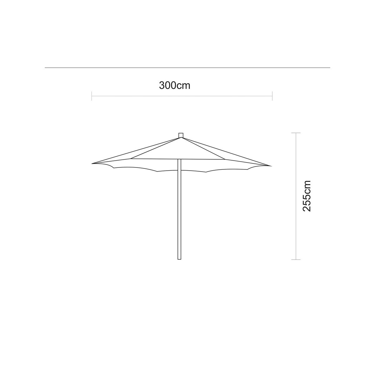 Ombrelone na cor verde. Possui 3,0m de diâmetro da cobertura, 2,55m de altura, 37mm de diâmetro do mastro central e 9,27kgs. O ombrelone é entregue montado. .