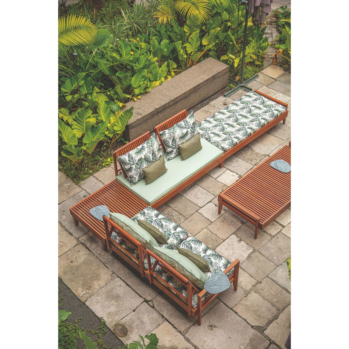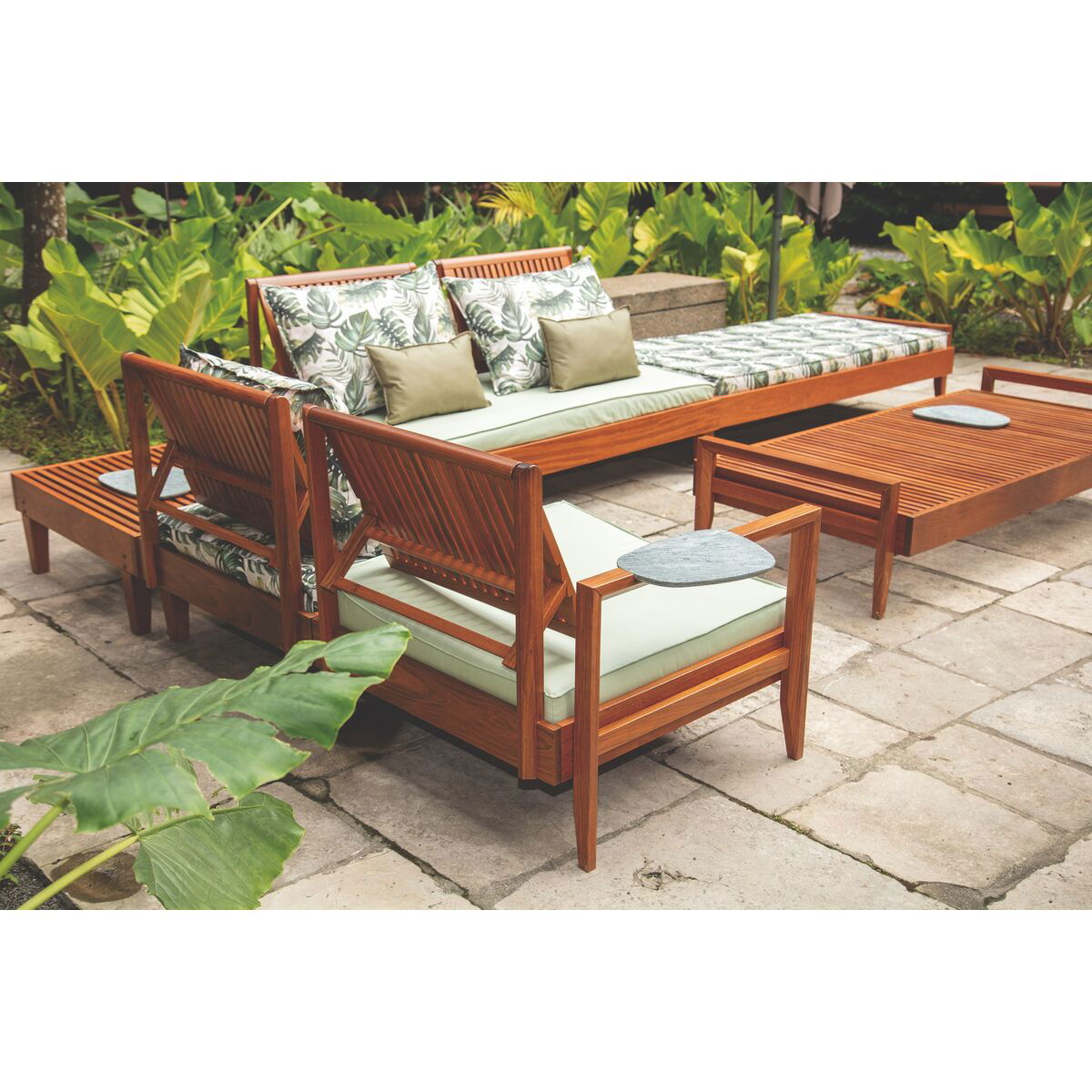 Produzido em madeira maciça Jatobá FSC de alta densidade e resistência às intempéries.