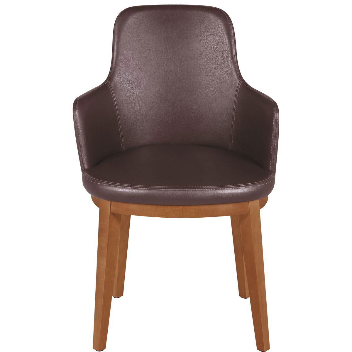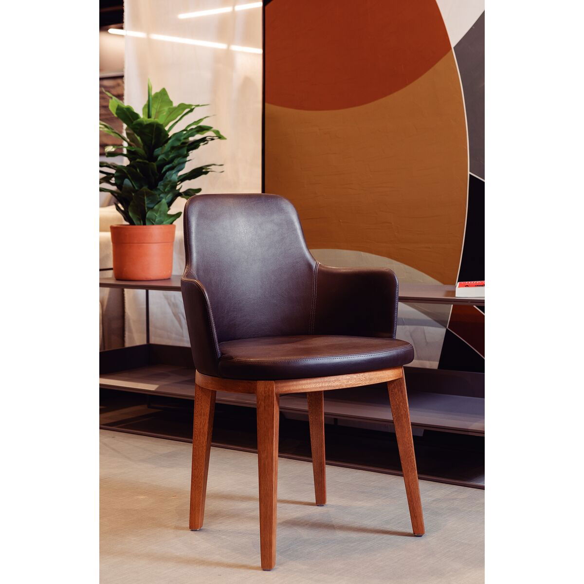 Poltrona Tramontina Piazza London em Madeira Tauarí com Acabamento Envernizado Amêndoa e Estofado em Couríssimo Café