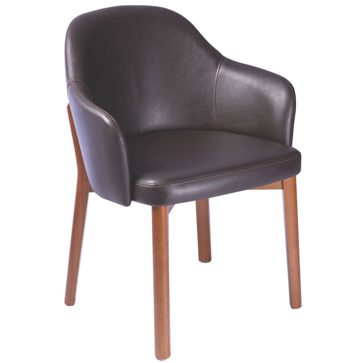 Poltrona Tramontina Porto com Base em Madeira Tauarí com Acabamento Amêndoa e Estofado Café