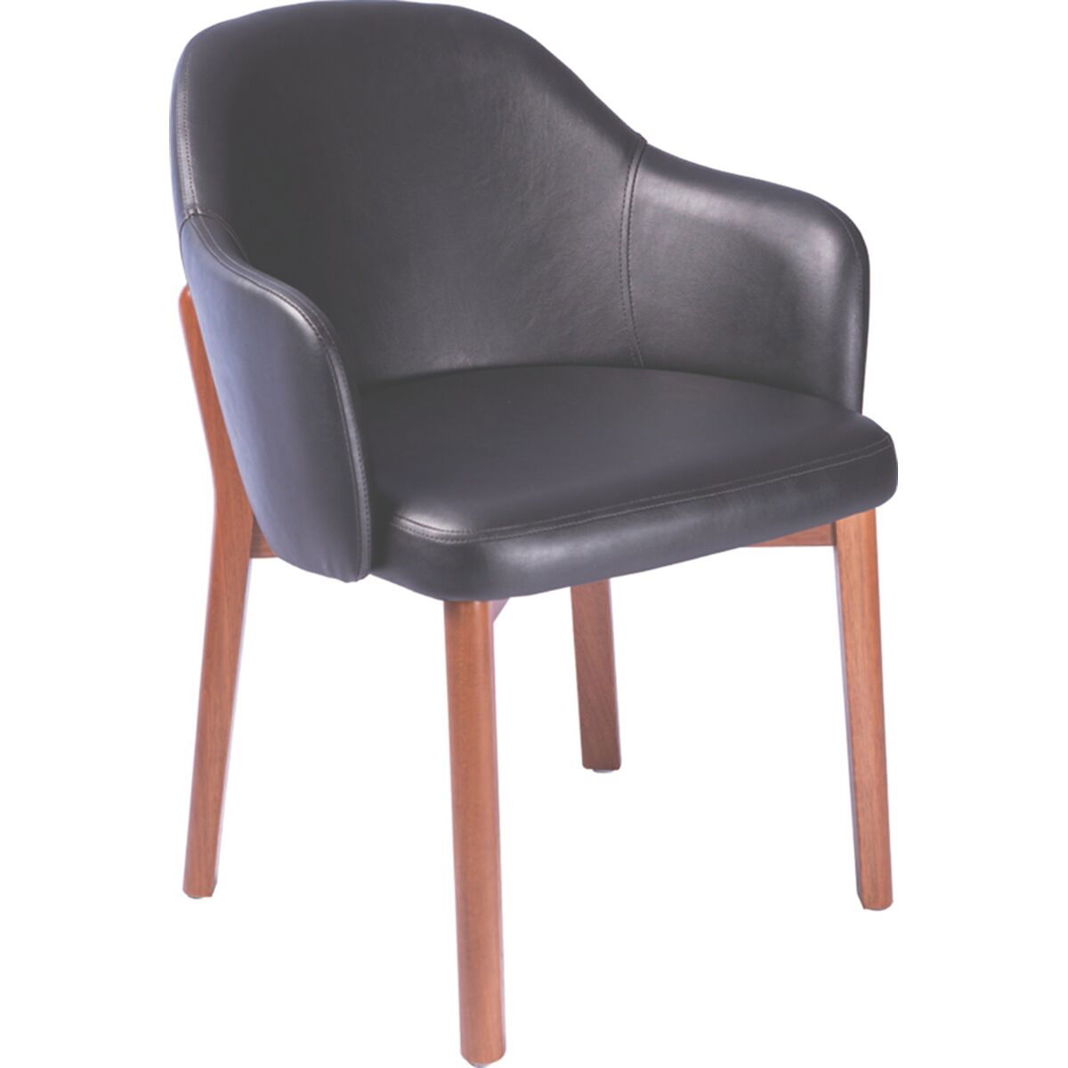 Poltrona Tramontina Porto com Base em Madeira Tauarí com Acabamento Amêndoa e Estofado Preto