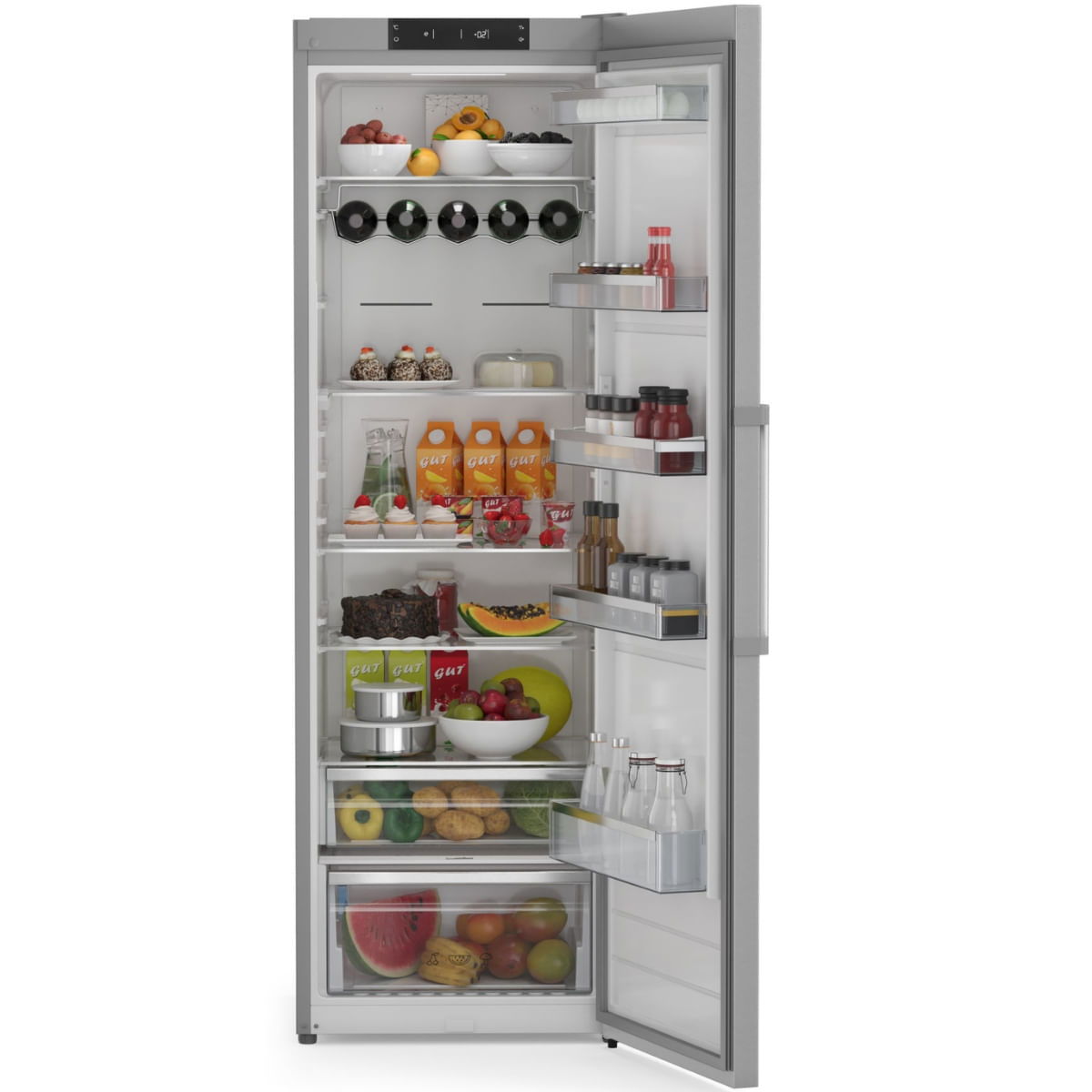 - Display digital: Este recurso incrível na porta permite que você controle as funções Holiday (economia de energia) e Super Cool (resfriamento rápido) com facilidade e conveniência. 🌐