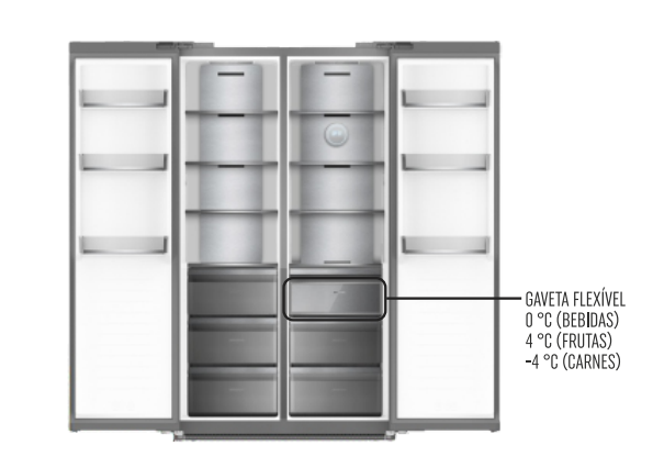 - Gaveta Flexível 3 em 1: Personalize a temperatura para diferentes alimentos.