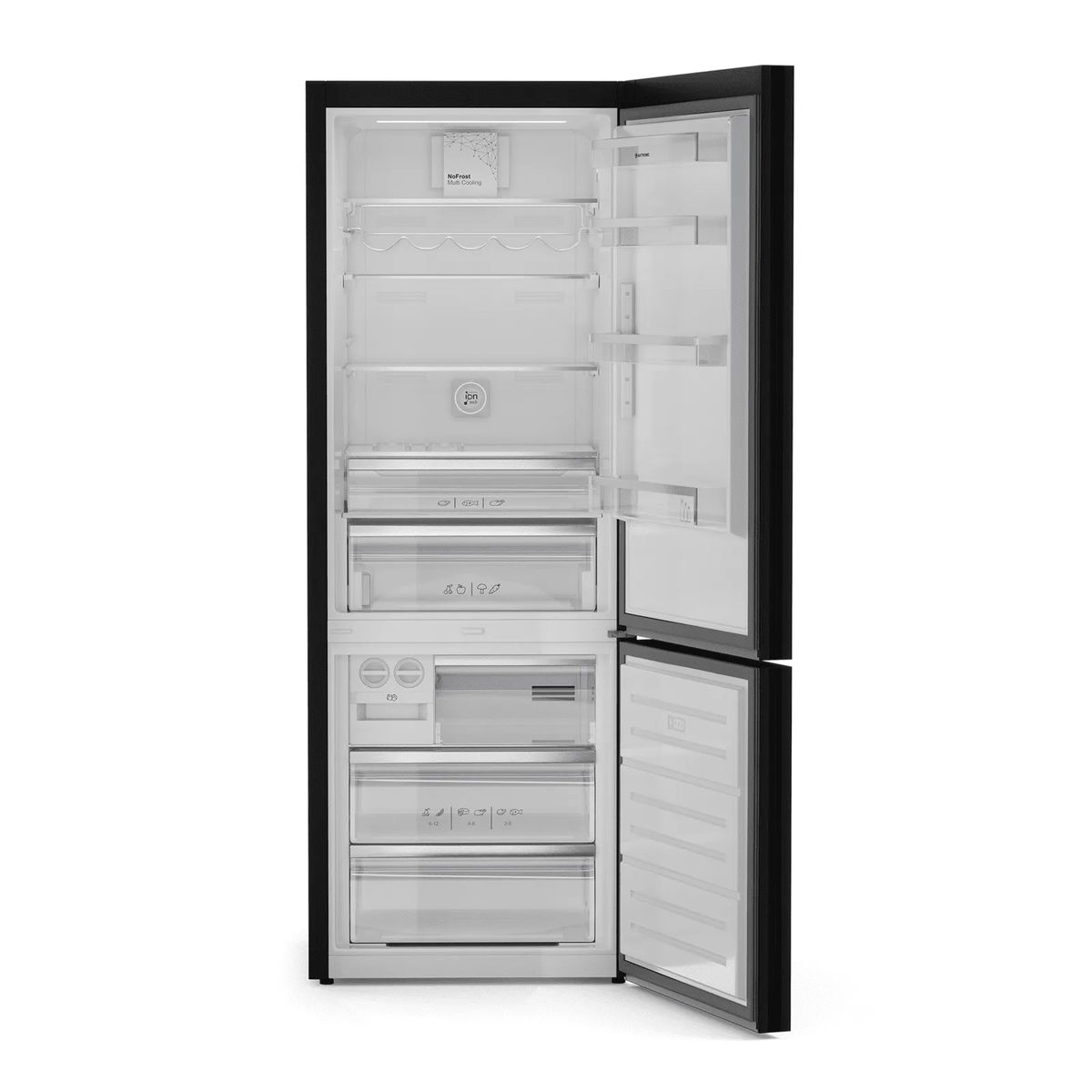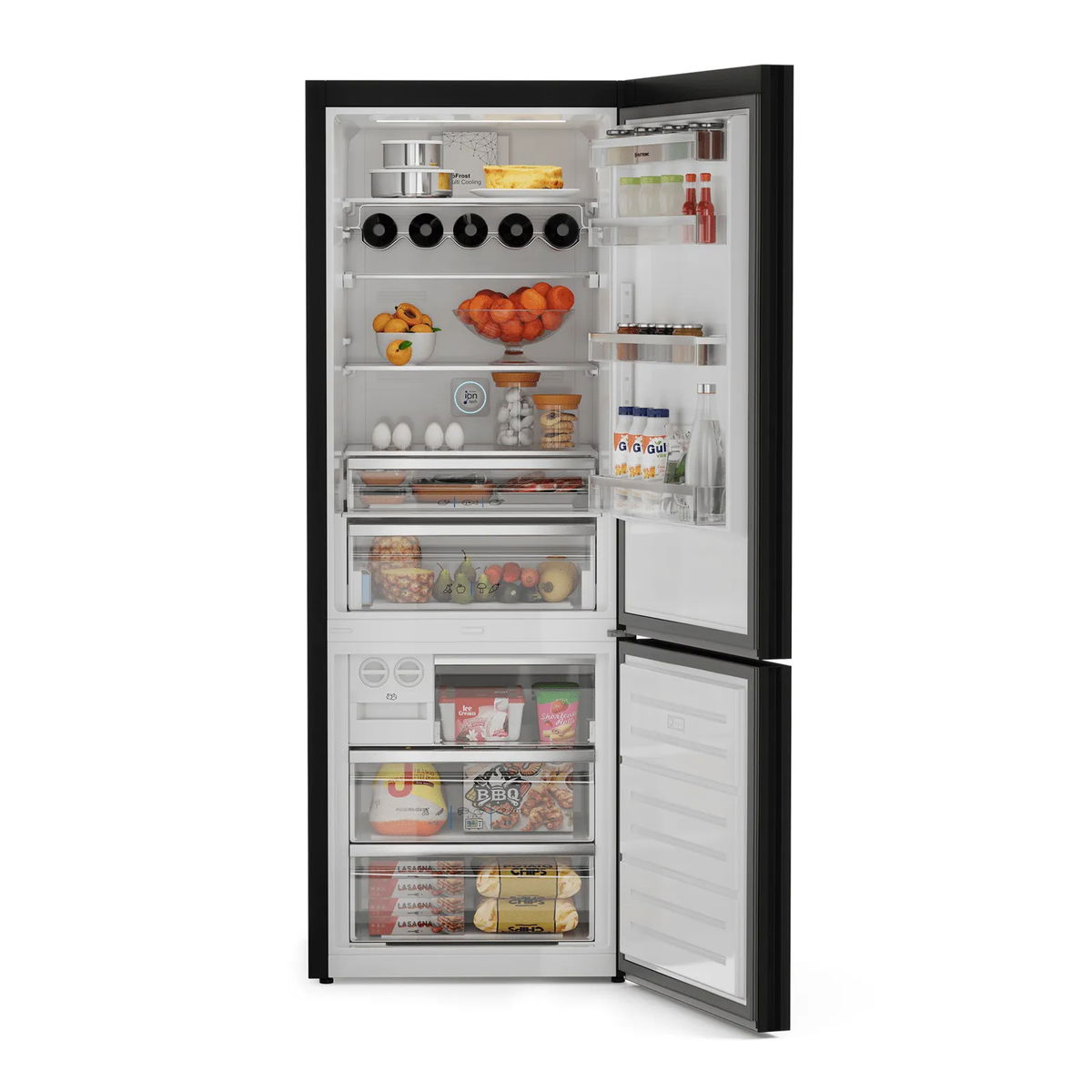 - Amplo espaço interno: permite o armazenamento de uma grande quantidade de alimentos, com acabamento em vidro preto e design minimalista que adiciona um toque de elegância à sua cozinha.