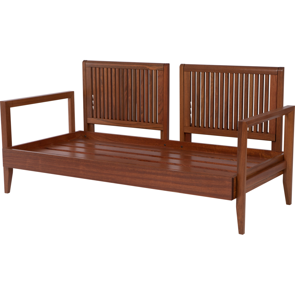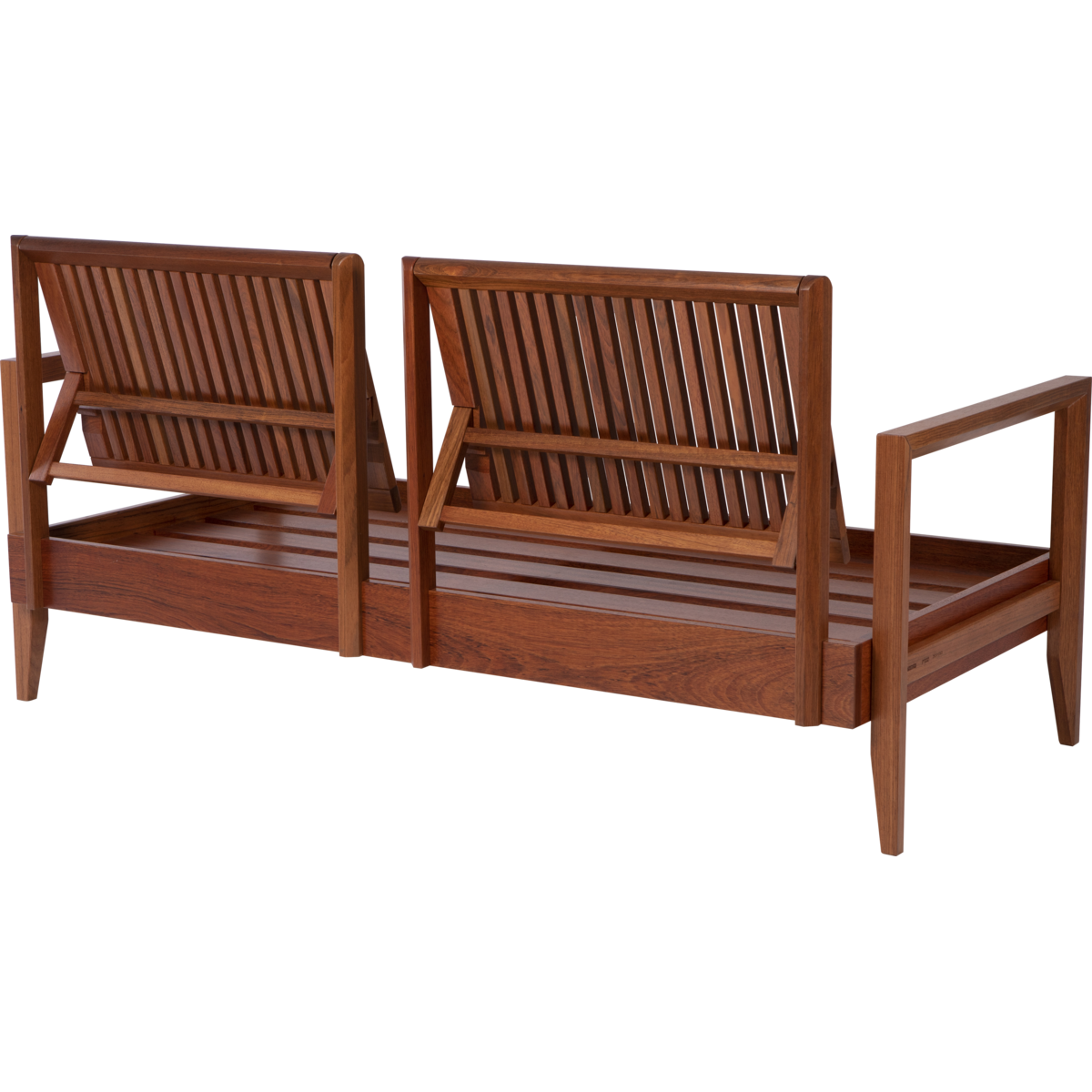 Produzido em madeira maciça Jatobá FSC de alta densidade e resistência às intempéries.
